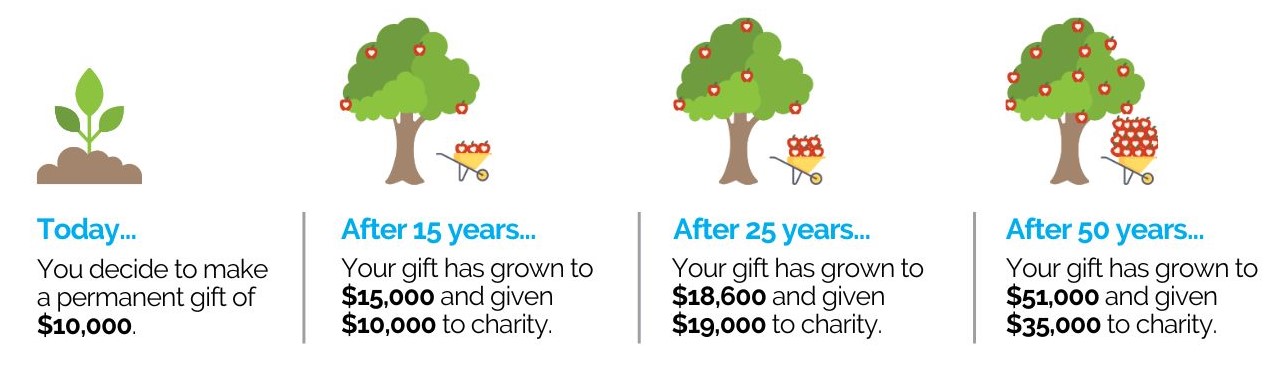 We work with people like you to create a permanent fund and lasting legacy in your name. Is there a charity or cause that has impacted your life? What "mark" do you want to leave behind for future generations?